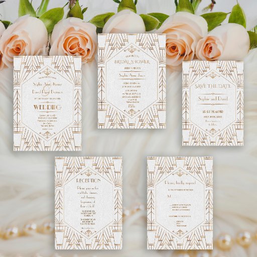 Convites 1920 Gatsby do Excelente Branco Dourado Real