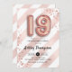 19º convite de aniversário. Design elegante em ouro brilhante rosa com listras. Convidar cartão com rosa dourado número 19 balões, fonte de script com confetti. Coral cor-de-rosa, branco. Perfeito para uma comemoração de na moda 19 dias. Envie-me uma mensagem se precisar de idade personalizada.
