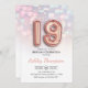 19º convite de aniversário. Design elegante em ouro brilhante rosa com luz cor-de-rosa pastel e roxo. O cartão de convite apresenta o número ouro 19 balões e fontes de script. Perfeito para uma comemoração de na moda. Envie-me uma mensagem se precisar de idade personalizada.