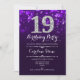 19º Convite de Aniversário. Elegante design branco roxo com prata brilhante. Aniversário adulto. Apresenta diamantes e fontes de script. Convidado para homens ou mulheres no dia. Perfeito para uma festa de aniversário na moda. Envie-me uma mensagem se precisar de mais personalização.