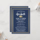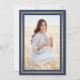 Quer amigos e familiares estejam praticando distanciamento social ou simplesmente vivam longe, conectem-se com eles online com uma festa de formatura virtual na moda. (DICA DE IMAGEM: Uma maneira fácil de centralizar uma foto exatamente como você deseja é recortá-la antes de carregá-la no site do Zazzle.) Este moderno convite azul, dourado e branco do marinho permite compartilhar uma foto e convidar convidados para um evento de longa distância por meio de videoconferência com zoom, streaming ao vivo pela Internet ou um jogo de vídeo de realidade virtual. Todo texto também é simples de personalizar para uma parada de carro de graduação de drive-by ou drive-through. Se apenas um cartão de anúncio for preferido, basta mudar o texto para incluir qualquer detalhe de sua escolha, como nomes de pais, honras especiais, título de grau, planos futuros de formando e informações de contato, ou citação de inspiração favorita. O Modelo também pode incluir uma mensagem pessoal se este for um evento reagendado devido a um cancelamento ou adiamento. Se houver algum texto não desejado, simplesmente exclua-o. Design apresenta um fundo azul marinho, folha metálica falsa, tipografia branca na moda, caligrafia de script de estilo manuscrito e uma foto de sua escolha, como uma foto de mais velho ou imagem da cerimônia de início. Por favor, note que o ouro é impresso a cor, não a folha real. Esta carta elegante é uma maneira chique de começar sua celebração especial. Parabéns ao formando!
