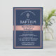 Convites 1 Marinho de Batismo Azul e Rosa Rosa Dourada