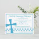 Cruz azul brilhante para primeira comunhão sagrada ou batismo. Texto personalizável.