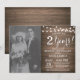 Convite de 2º Aniversário de Casamento com foto personalizada. Fundo de Madeira Rústica. Luzes de Corda. Preto e Branco. 1º, 2º, 3º, 4º, 5º, 10º, 15º, 20º, 25º, 30º, 35º, 40º, 45º, 50º, 55º, 60º, 65º, 70º, 75º, 80º, Qualquer Ano. Aniversário de Adulto. Festa de Aniversário Feminina ou Masculina. Para personalização adicional, clique no botão "Personalizar" e use nossa ferramenta de design para modificar este modelo.