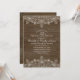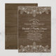 Convites de 20º Aniversário de Casamento Rustic Wood Country Lace e Pérolas. Personalizados para os detalhes da sua celebração. Característica de renda bonita, pérolas e tipografia em um fundo de madeira escura rústica. Convites de aniversário de casamento elegantes para aniversários country criativos. Este convite de aniversário de casamento é projetado por superdazzle.com