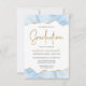 Este convite de festa de formatura de tendência apresenta uma borda superior e inferior de geode de agata de aquarela em tons de azul pastel com realces de brilho dourado falsos. A palavra "Graduação" aparece na falsa brilha dourada em letra decorativa moderna de escrita manual. Personalize o convite com o nome do formando em texto dourado e os detalhes da parte em cinzas de carvão em fundo branco. Substitua facilmente a imagem de amostra na parte traseira por uma foto vertical do formando.