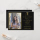 O moderno e elegante modelo de convite para a festa de formatura da escola de enfermagem negra, brilhante em ouro, com a sua fotografia e texto personalizados.