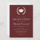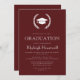 Este clássico design de convite para festa de formatura de apresenta uma coroa de louros branca armando um boné de formatura silenciado em branco sobre um fundo burgundy. O ano de classe editável aparece na fonte burgundy open serif no boné. Personalize o texto com o nome do formando e os detalhes da parte. A parte de trás do cartão é uma arma sólida. Ideal para segundo grau, faculdade ou formando universitário.