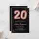 convite de aniversário 20. Design elegante em ouro brilhante rosa e preto. A placa de convite apresenta rosa dourado número 20 balões e fonte de script. Perfeito para uma comemoração de na moda. Envie-me uma mensagem se precisar de idade personalizada.