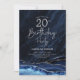 convite de aniversário 20 azul marinho e agate prateado. Elegante design moderno com cor azul-real de água agate marble geode fundo, faux glitter prata e script de tipografia. Trendy convida o cartão perfeito para uma comemoração de dia das mulheres na moda. Impressos convites Zazzle ou modelo de impressão digital instantânea para download.