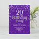 Convite de aniversário 20. Design elegante em roxo real e prata brilhante falso. Possui fonte de script na moda e confetti. Envie-me uma mensagem se precisar de idade personalizada.