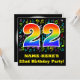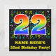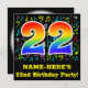 A frente desta design convite de aniversário divertida, vibrante e excitante apresenta um grande número "22" tendo um padrão inspirado no gradiente do espectro arco-íris. Também apresenta um nome editável e a mensagem "22ª Festa de aniversário!". Parte do fundo tem um padrão divertido de várias notas e símbolos de música com várias cores e tamanhos. A parte traseira contém detalhes personalizáveis sobre o evento para o qual os possíveis convidados estão sendo convidados. Cartões de convite de aniversário felizes e editáveis como este podem ser enviados a potenciais convidados de um partido a ser mantido para honrar um músico, um cantor, um compositor de música ou o 22º aniversário de alguém. [~Z0000427]