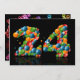 Um convite de aniversário divertido com cores felizes, bolhas e bolas de salto. Um cartão de excelente para qualquer idade. Veja toda a gama de convites e cartões na minha loja.