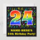 A frente deste design de convite de aniversário divertido, colorido e vibrante apresenta um grande número "24" com um padrão inspirado no gradiente do espectro arco-íris, juntamente com um nome editável e a mensagem "24.ª Festa de aniversário!" Parte do fundo tem um padrão divertido de várias notas e símbolos de música com várias cores e tamanhos. A parte traseira contém informações editáveis relacionadas ao evento para o qual os possíveis convidados estão sendo convidados. Cartões de convite para comemorações de aniversário vibrantes e editáveis como este podem ser enviados a potenciais convidados de uma comemoração realizada para honrar o aniversário de um cantor, um compositor de música, um músico ou o 24.º aniversário de alguém. [~Z0000427]