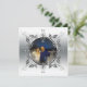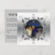 Convites personalizados de aniversário de bodas de prata com foto têm rolos de metal com aparência de vinha formando uma moldura circular para a foto personalizada do casal no 25º aniversário. O verso é em cinza coordenado e pronto para as informações da sua festa de aniversário de prata personalizada.