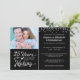 Convide seus convidados com este convite de aniversário de 25 anos de casamento com uma borda de confetes prateados e tipografia retrô que diz 25 ANOS EM CONSTRUÇÃO com o ano do casamento integrado ao design. Adicione uma foto atual, o retrato de casamento ou uma foto de seus anos mais jovens para um convite divertido com um visual do passado. Entre em contato com o designer se desejar que este design seja modificado ou esteja em outro produto para complementar o conjunto da sua festa.