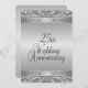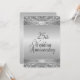 Convites elaborados de aniversário de casamento de prata para uma recepção / festa de 25 anos de casamento. Frente e verso prateados com texto preto no verso dão um visual sofisticado a este convite de aniversário único.