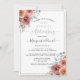 Convite de aniversário de casamento requintado com detalhes prateados e delicados elementos florais pintados à mão em aquarela. Possibilidade de alterar o número do aniversário para atender às suas necessidades. Flores e folhagens em tons de pêssego, rosa beije, rosa velado, cinza azul menta e verde menta sálvia. Verso do cartão em cor elegante pêssego beije (rosé). Uso de tipografia elegante manuscrita e em bloco. Verso do cartão com detalhe floral cativante no centro. Produtos coordenados disponíveis. Parte da nossa coleção de casamento e eventos "Ethereal in Blush Peach".
