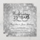 Elegante modelo de convite para festa de 25º aniversário de casamento Winter Wonderland com flocos de neve e brilhos em prata.