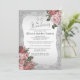 Convites 25º Aniversário Silver Glitter | Floral Rosado