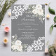 Para um elegante e romântico aniversário de 25. Uma cinza decorada com flores brancas, rosas e rendas brancas. Personalize e adicione seus nomes e detalhes.