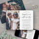 Convide familiares e amigos para uma celebração de casamento simples e elegante apenas para recepção com este convite moderno e elegante de 2 fotos. Todo o texto é simples de personalizar para um 1º aniversário, cerimônia de renovação de votos, casamento subsequente, ou jantar. Personalize-o para incluir quaisquer detalhes de sua escolha, como data do casamento, código de vestimenta, RSVP, site, etc. (DICA DE POSICIONAMENTO DE IMAGEM: Uma maneira fácil de centralizar uma foto exatamente como você deseja é cortá-la antes de fazer o upload para o site da Zazzle.) O design moderno minimalista preto e branco apresenta duas fotos do casal recém-casado, caligrafia de script manuscrita trendy e tipografia estilo máquina de escrever chic. Quer você tenha fugido, tenha tido um minimônio menor ou um micro-casamento, ou a celebração do seu dia especial tenha sido remarcada devido a um adiamento relacionado à pandemia de covid, a festa do felizes para sempre ainda pode começar.