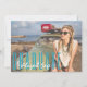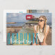 2 Foto Trendy Modern Beach Graduation Convite com Aqua, Areia e Texto Branco