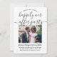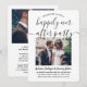 Convide familiares e amigos para uma celebração de casamento simples e elegante apenas com recepção com este convite moderno e elegante de 2 fotos. Todas as palavras são simples de personalizar para um 1º aniversário, cerimônia de renovação de votos, segundo casamento, ou jantar. Personalize-o para incluir quaisquer detalhes de sua escolha, como data de casamento, código de vestimenta, RSVP, site, etc. (DICA DE COLOCAÇÃO DE IMAGEM: Uma maneira fácil de centralizar uma foto exatamente como você deseja é cortá-la antes de fazer o upload para o site da Zazzle.) O design moderno minimalista preto e branco apresenta duas fotos do casal recém-casado, caligrafia de script manuscrita moderna e tipografia elegante no estilo de máquina de escrever. Quer você tenha se casado em segredo, tenha tido um minimônibus ou micro-casamento menor, ou sua celebração do dia especial tenha sido remarcada devido a um adiamento relacionado à pandemia de covid, a festa do felizes para sempre ainda pode