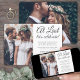 Convide familiares e amigos para uma celebração de casamento simplesmente elegante com este convite de casamento moderno e sofisticado "At Last Let's Celebrate" com 2 fotos. Todo o texto é fácil de personalizar para qualquer tipo de evento, incluindo uma festa de recepção após um casamento íntimo, cerimônia de renovação de votos, casamento subsequente, recepção de 1º aniversário, hora do coquetel ou jantar. Personalize-o para incluir os detalhes de sua escolha, como data do casamento, código de vestimenta, RSVP, site, etc. (DICA DE COLOCAÇÃO DE IMAGEM: Uma maneira fácil de centralizar uma foto exatamente como você deseja é cortá-la antes de fazer o upload para o site da Zazzle.) O design moderno minimalista preto e branco apresenta duas fotos do casal recém-casado, caligrafia manuscrita trendy e tipografia elegante no estilo de máquina de escrever. Quer você tenha se casado em segredo, tenha tido um minimônial ou microcasamento menor, ou sua celebração do dia especial tenha sido remarcada devido a um adiamento relacionado à pandemia de covid, a festa do fel