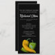 Convide convidados para comemorar a grande abertura do seu novo estabelecimento de alimentação limpa com o Convite à Grande Abertura do Restaurante Dois Pimentos. Perfeito para um restaurante fino especializado num cardápio saudável com vegetais frescos, comida orgânica ou bar de salada. Personalize-o com o nome da sua empresa, linha de etiqueta e detalhes do evento. Este convite personalizado apresenta uma fotografia de comida próxima de dois pimentos de jardim entrelaçados em amarelo e verde sobre fundo preto.