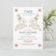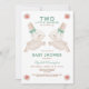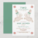 Primavera doce convite para chá de fraldas gêmeos. Dois Pequenos Bunnies estão a caminho, Twins Chá de fraldas Convite. O chá de fraldas gêmeo convida com coelhos doces vestindo arcos verdes.