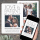Convide familiares e amigos para uma recepção de casamento simplesmente elegante com este convite de 2 fotos moderno e sofisticado "o amor é paciente, mas não pudemos esperar". Toda a redação é simples de personalizar para qualquer celebração apenas de recepção, incluindo uma festa pós-fuga, cerimônia de renovação de votos, casamento subsequente, 1º aniversário, hora do coquetel ou jantar. Personalize-o para incluir os detalhes de sua escolha, como data de casamento, código de vestimenta, RSVP, site, etc. (DICA DE COLOCAÇÃO DE IMAGEM: Uma maneira fácil de centralizar uma foto exatamente como você deseja é cortá-la antes de fazer o upload para o site da Zazzle.) O design moderno minimalista preto e branco apresenta duas fotos do casal recém-casado, caligrafia de script manuscrita na moda e tipografia estilo máquina de escrever sofisticada. Quer você tenha fugido devido à pandemia de covid ou reduzido para uma minimononia ou micro-casamento menor e mais íntimo, a festa feliz para sempre ainda pode começar