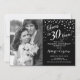 Convites 30º Aniversário com Foto - Preto Branco Prata