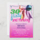 convite de festas 30 Flirty & Thriving Retro 90s aniversário de 30 anos - Comemore o marco de virar o estilo retrô 30 com este divertido e colorido convite para aniversário de 30 anos estilo neon dos anos 90. Apresentando um design retroativo dos anos 90 com cores néon brilhantes como cor-de-rosa-quente magenta, cor-de-rosa-brasa e estrutura cor-de-laranja e um arco coquetel arco-íris brilhante. Perfeito por jogar um retrorreflector dos anos 90 com os temidos 30, festa de Flirty e aniversário de 30 anos ou celebração do aniversário de 30 anos de arco de retroglama. Disponível nos formatos impressão e digital. Personalize este convite de festas de aniversário de 30 anos editável para mulheres com os seus próprios detalhes de eventos.