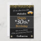 Cartão de Aniversário, 30, vintage, preto e ouro, descarregável