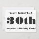 O texto preto é apresentado nesta divertida, surpresa, aniversário de 30 anos convite de festas para qualquer um.