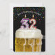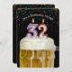 Número 32 velas em caneca de cerveja com confete colorido em preto para 32ª festa de aniversário de convite.