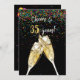Brinde de champanhe em preto com confete colorido para o 35º convite para festas de aniversário.
