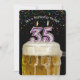 Numero de velas de 35 anos em caneca de cerveja com confete colorido em preto para o convite para a 35ª festa de aniversário.