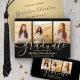 Compartilhe a alegria de um segundo grau ou formandos e convide a família e os amigos a celebrarem com estes convites personalizados de 3 colagens de fotos em preto e ouro. Todas as imagens e textos são simples de personalizar. (DICA DE IMAGEM: Uma maneira fácil de centralizar uma foto exatamente como você deseja é recortá-la antes de carregá-la no site do Zazzle.) Este modelo é formatado para uma festa de formatura, mas pode ser facilmente personalizado como um convite ou um cartão de anúncio de casa aberta. Simplesmente mude o texto para incluir quaisquer detalhes de sua escolha, como nomes de pais, honras especiais, título de grau, citação de inspiração favorita, planos futuros de formandos ou novo endereço. Se houver algum texto não desejado, simplesmente exclua-o. Design apresenta um fundo preto, boné falso de morteiro de folha de alumínio, caligrafia de script de estilo manuscrito, tipografia moderna minimalista e três fotos de sua escolha, como fotos de mais velho ou imagens da cerimônia de início. Observe que o ouro é impresso a cor, não a folha metálica. Esta elegante carta de convite para a formatura é uma maneira moderna e chique de começar a sua celebração especial. Parabéns ao formando!