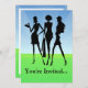Três amigos e modistas saem pela cidade por um dia de compro e diversão. Este gráfico mostra uma grama verde e um fundo azul com três mulheres silhuetas, segurando sacos de compras e bolsas, prontas para sair na cidade na moda. Excelente para uma viagem de compro, dia ou noite de saída, ou uma festa em casa. Todos os Designs Copyright © 2012 www.CuteComfy.com