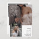 Este anúncio de casamento é uma forma excelente de deixar seus amigos e familiares saberem que você fugiu, teve uma cerimônia secreta, ou um casamento particular, e que quer celebrar com eles! A frente do cartão foi projetada para mostrar duas das suas fotos favoritas de casamento, com as palavras 'Nós dissemos sim' no topo esquerdo, em uma tipografia branca, eterno e elegante da revista de moda e um combo elegante de roteiro. Seus nomes, data do casamento e local aparecem no canto inferior direito em uma fonte moderna, moda sans serif. A parte traseira do cartão permite digitar a data e o local do casamento e personalizar o cartão com todas as informações relevantes sobre recepção de casamento postada. Também apresenta uma terceira foto de casamento, desta vez é uma imagem horizontal. Este é um design de modelo e é muito fácil de personalizar para atender às suas necessidades. Copyright Anastasia Surridge, todos os direitos reservados.