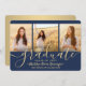 Compartilhe a alegria de um segundo grau ou formandos e convide a família e os amigos a celebrarem com estes convites personalizados de 3 marinhos de colagem azul e ouro. Todas as imagens e textos são simples de personalizar. (DICA DE IMAGEM: Uma maneira fácil de centralizar uma foto exatamente como você deseja é recortá-la antes de carregá-la no site do Zazzle.) Este modelo é formatado para uma festa de formatura, mas pode ser facilmente personalizado como um convite ou um cartão de anúncio de casa aberta. Simplesmente mude o texto para incluir quaisquer detalhes de sua escolha, como nomes de pais, honras especiais, título de grau, citação de inspiração favorita, planos futuros de formandos ou novo endereço. Se houver algum texto não desejado, simplesmente exclua-o. Design apresenta um fundo azul escuro, boné de conselho de morteiro de folha falsa, caligrafia de script manuscrita, tipografia moderna minimalista e três fotos de sua escolha, como fotos de mais velho ou imagens da cerimônia de início. Observe que o ouro é impresso a cor, não a folha metálica. Esta elegante carta de convite para a formatura é uma maneira moderna e chique de começar a sua celebração especial. Parabéns ao formando!