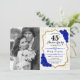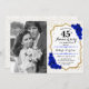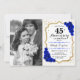 Convite de 40º Aniversário de Casamento com Foto. Design elegante em safira e branco com dourado brilhante falso. Apresenta fonte manuscrita, rosas azuis reais e confetes. Pode ser personalizado para qualquer ano! Mensagem para mim se precisar de mais personalização.