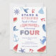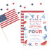 Um design de convite para o 4º aniversário muito patriótico adequado para um menino ou menina ou mesmo gêmeos.