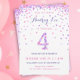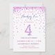 Celebre o aniversário de 4 anos com um confete rosa e roxo colorido nestes convites de 4 anos! Apresentando os detalhes da festa da sua filha e um "4" em confetti. A parte de trás tem um design de confetti com uma cor de lavanda suave. Este design adorável é super fofo e giro - e perfeito para a garota que ama rosa e roxo!