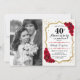 Convite de 40º Aniversário de Casamento com Foto. Design elegante em vermelho rubi e branco com dourado brilhante falso. Apresenta fonte de caligrafia, rosas vermelhas e confetes. Pode ser personalizado para qualquer ano! Mensagem-me se precisar de mais personalização.