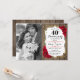 Convite de 40º Aniversário de Casamento com Foto. Design elegante em vermelho rubi e branco com dourado brilhante falso. Apresenta fonte de script com padrão de madeira marrom escuro, rosas vermelhas e confetes. Pode ser personalizado para qualquer ano! Mensagem para mim se precisar de mais personalização.