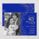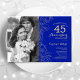 40º Aniversário Com Foto - Convite Safira Ouro Branco. Design moderno azul real com desenhos de esboço botânico e fonte de letra script. Cartão de convite simples e moderno perfeito para uma celebração de aniversário de casamento elegante. Pode ser personalizado para refletir qualquer ano de casamento. Convites impressos da Zazzle ou modelo digital para impressão instantânea.