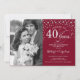 Convite de 40º Aniversário de Casamento com Foto. Design elegante em prata e vermelho rubi com fonte cursiva e confetes. Pode ser personalizado para mostrar qualquer ano de casamento. Saúde por 40 anos!
